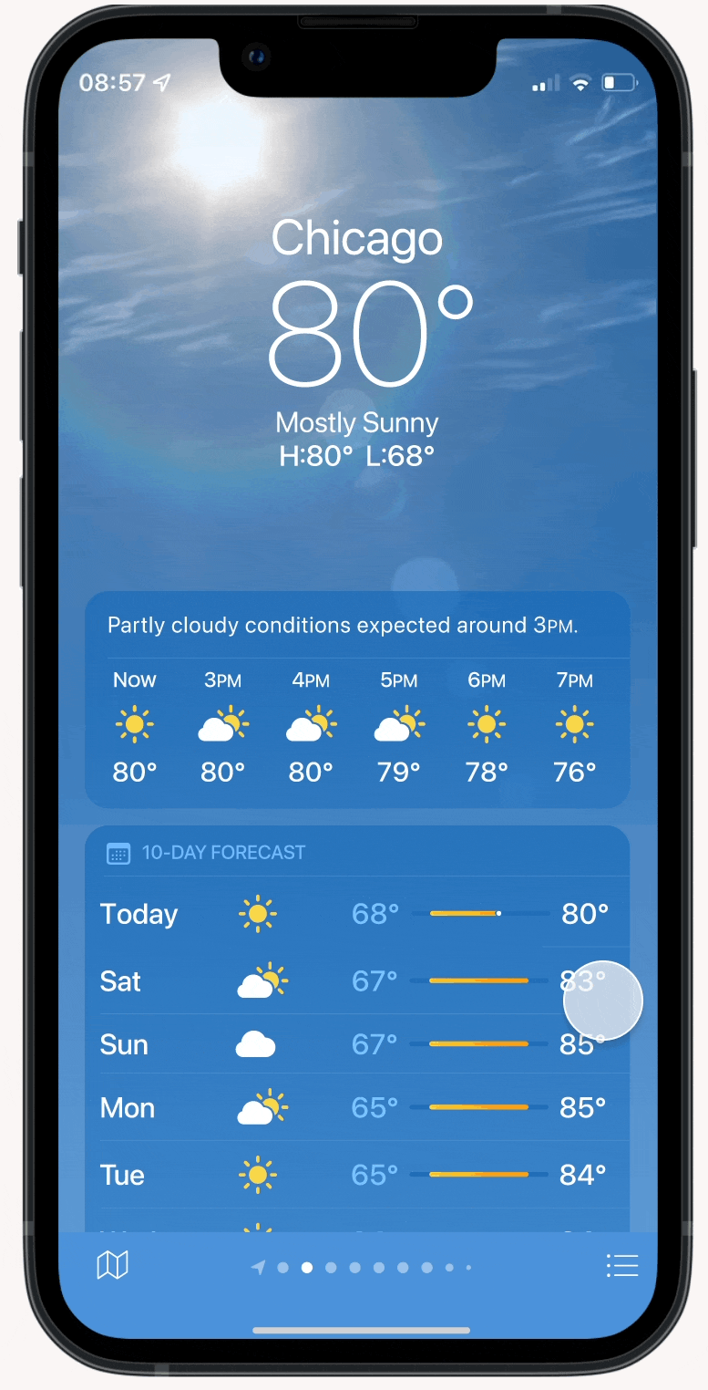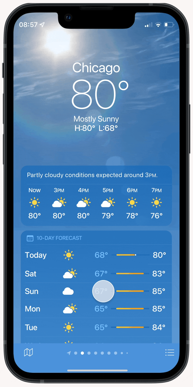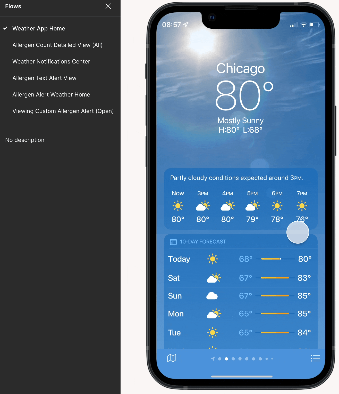 With a solid understanding of allergen data and my personas, I nailed down the features I wanted to add to Apple’s weather app. In my project, I want to: