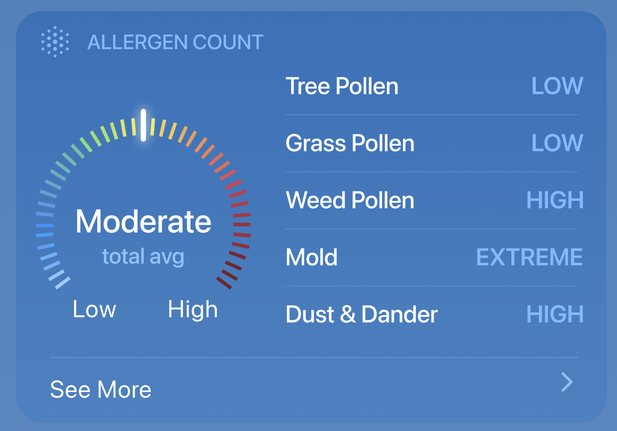 Add “total avg” or something similar to the moderate dial on the weather app allergen count widget.