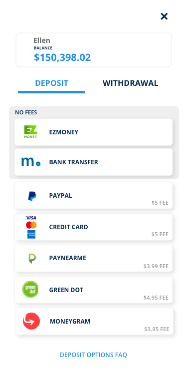 Clearly display deposit and withdrawal fees so it is obvious to the user.