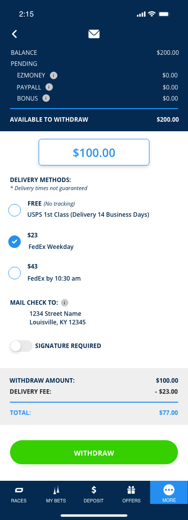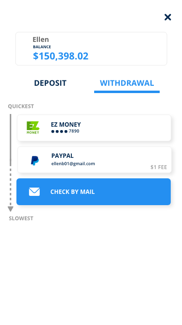 This project reminded me how important it is to advocate for the user. After being given this project, I took some time to ask questions in order to understand the full scope and goals of the project. I learned more about issues users were having and the negative feedback TwinSpires was repeatedly receiving about the deposit/withdrawal process. Some issues were about things like the slow withdrawal process while others were related to the UI. In particular, a major problem was that users felt lied to and confused when making deposits. There were fees that users did not notice and they’d contact customer support angry about more money than they thought they agreed to being taken out of their account. Some common pushback was making the fees too noticeable could disincentivize users. However, I was able to explain how it is more important to allow users to make informed decisions than to feel tricked by unclear fees. Meanwhile, we can highlight the options with no fees in eye-catching ways.
