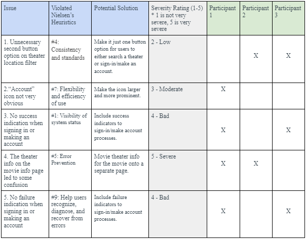 Participant 3 - Katlyn Goodridge: “Purchases tickets ahead of time, check showtimes, movie ratings, and summary.”